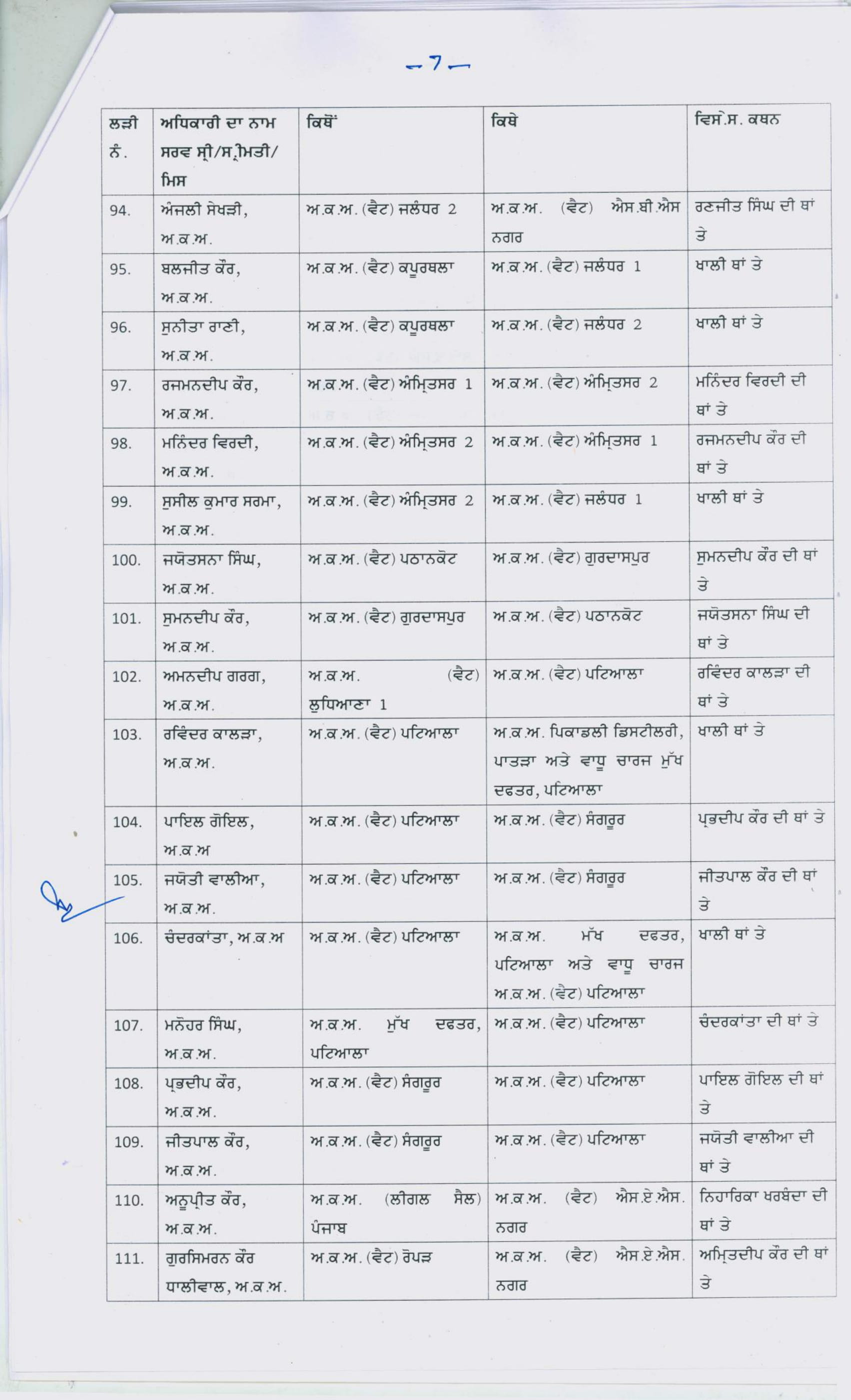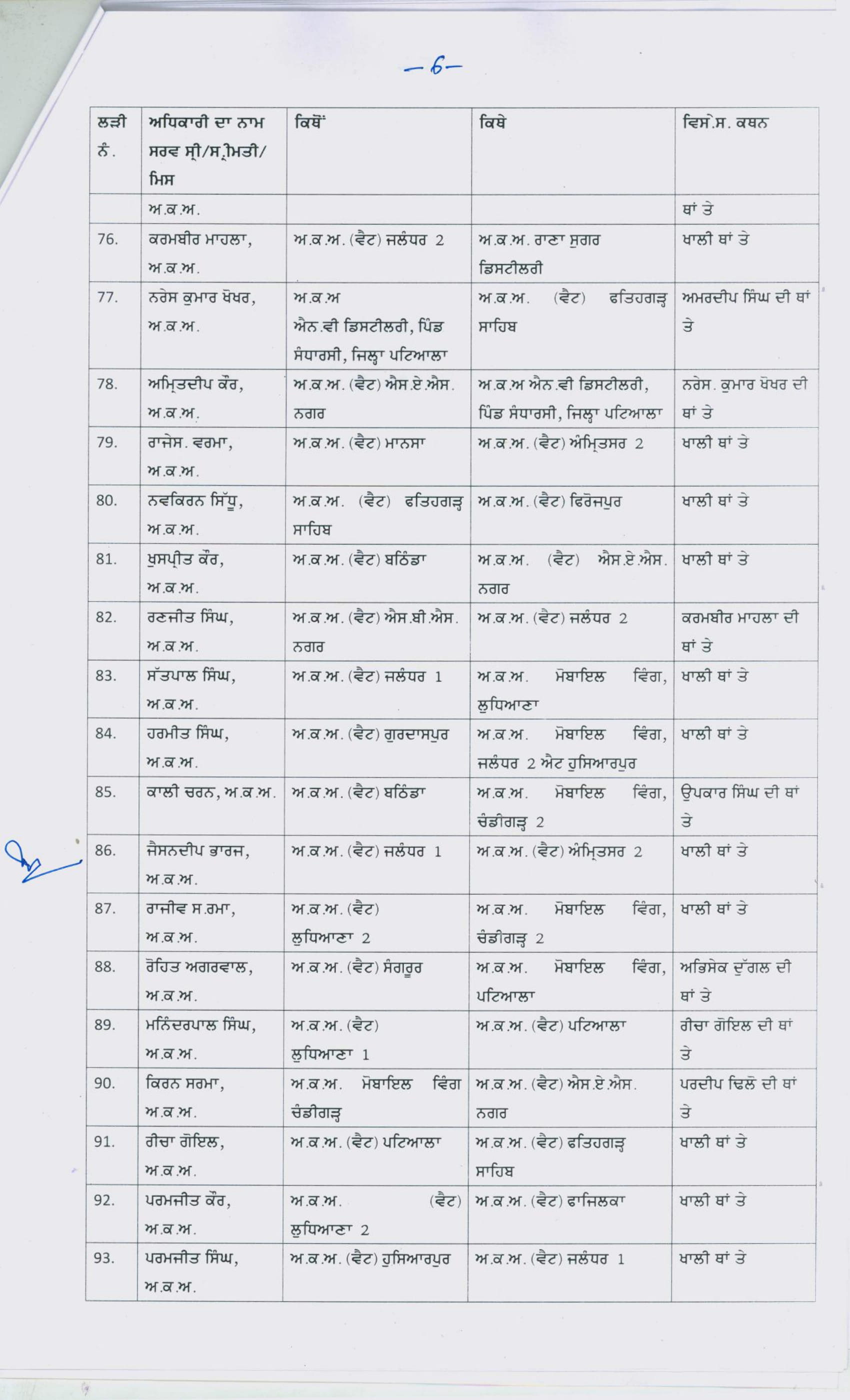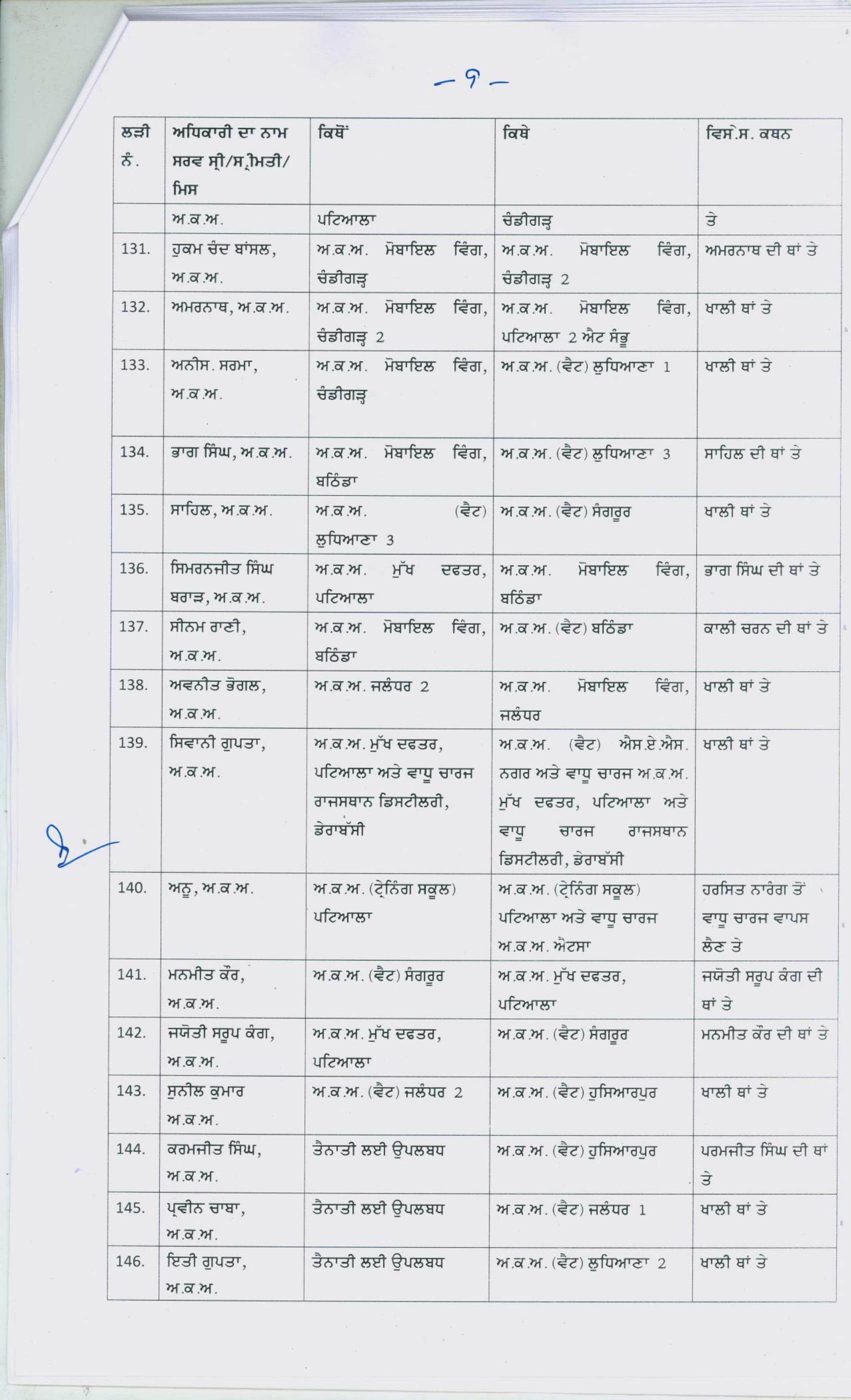 Punjab Govt transfers167 Excise and Taxation officers