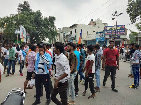 The road leading to Cantt was blocked at the Valmiki Chowk where the various leaders representation the Valmiki Outfits addressed the protesters.